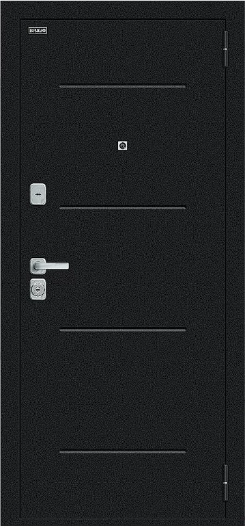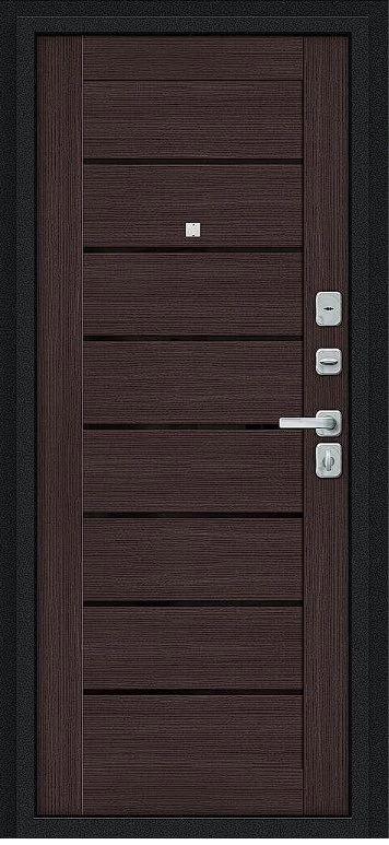 Надежная входная Дверь Браво Техно/BChrome Букле черное/Wenge Melinga премиум класса по цене 35 047 руб. Большая толщина стали защитит от проникновения в ваш дом, квартиру или коттедж. Используется очень качественная фурнитура: замки, цилиндры, ручки, защелки. Покрытие и отделка двери изготовлено под внимательным контролем производителя. Дверь имеет долгий срок службы и гарантию.
