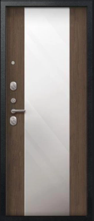 Надежная входная Дверь V-04 Черный муар - Миндаль Зеркало премиум класса по цене 45 247 руб. Большая толщина стали защитит от проникновения в ваш дом, квартиру или коттедж. Используется очень качественная фурнитура: замки, цилиндры, ручки, защелки. Покрытие и отделка двери изготовлено под внимательным контролем производителя. Дверь имеет долгий срок службы и гарантию.