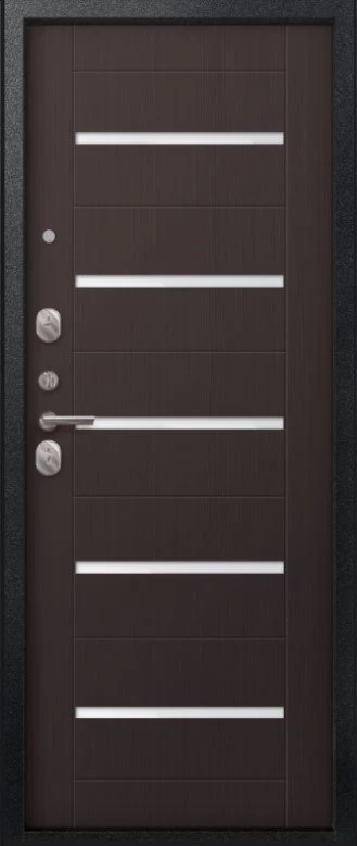 Надежная входная Дверь V-05 Черный муар - Темная лиственница премиум класса по цене 42 847 руб. Большая толщина стали защитит от проникновения в ваш дом, квартиру или коттедж. Используется очень качественная фурнитура: замки, цилиндры, ручки, защелки. Покрытие и отделка двери изготовлено под внимательным контролем производителя. Дверь имеет долгий срок службы и гарантию.